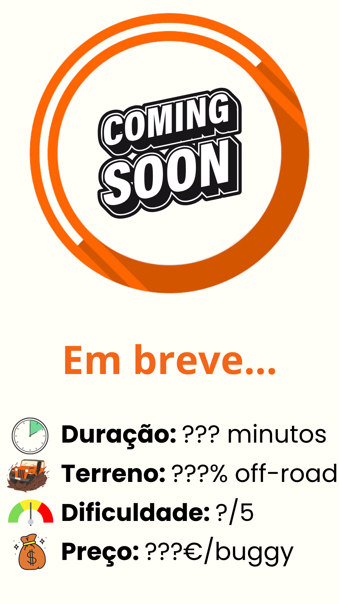 Aventura de 60 minutos ao volante de um buggy. O percurso é composto por 90% off-road e apenas 10% asfalto, passando por zonas montanhosas com alguns relevos para maior emoção.